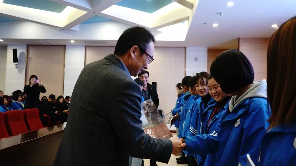 最后李书记和许理事长共同为学校职业素养示范教学点揭牌,许理事长和张副校长为学生代表赠送了《职业素养》指南。