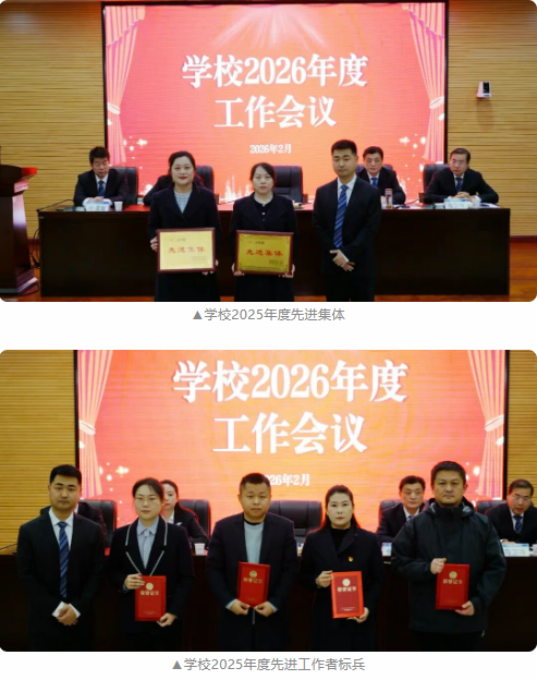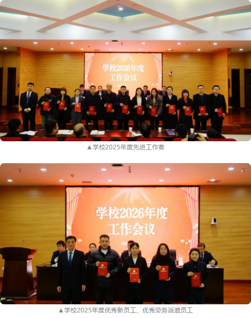 会上,宣读了学校2025年度“两优两先”评选结果和2025年度集体和个人所获荣誉,并进行了颁奖。