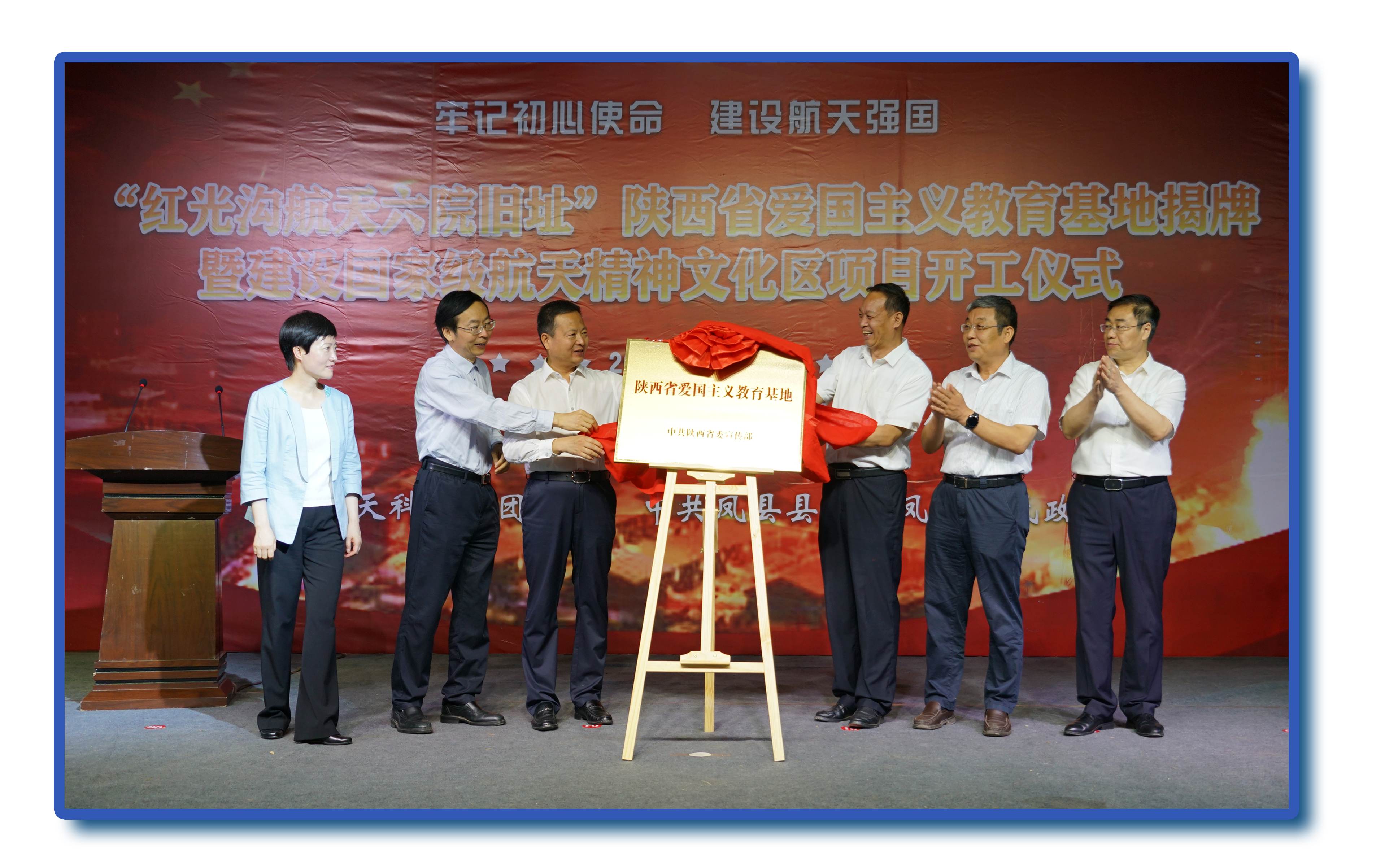 省委军民融合办主任韩保护,省工信厅产业政策处一级调研员宋亚朝,省文物局副局长贾强,宝鸡市委常委、宣传部长武勇超,航天六院党委书记周利民,凤县县委书记张帆共同为“陕西省爱国主义教育基地”揭牌。